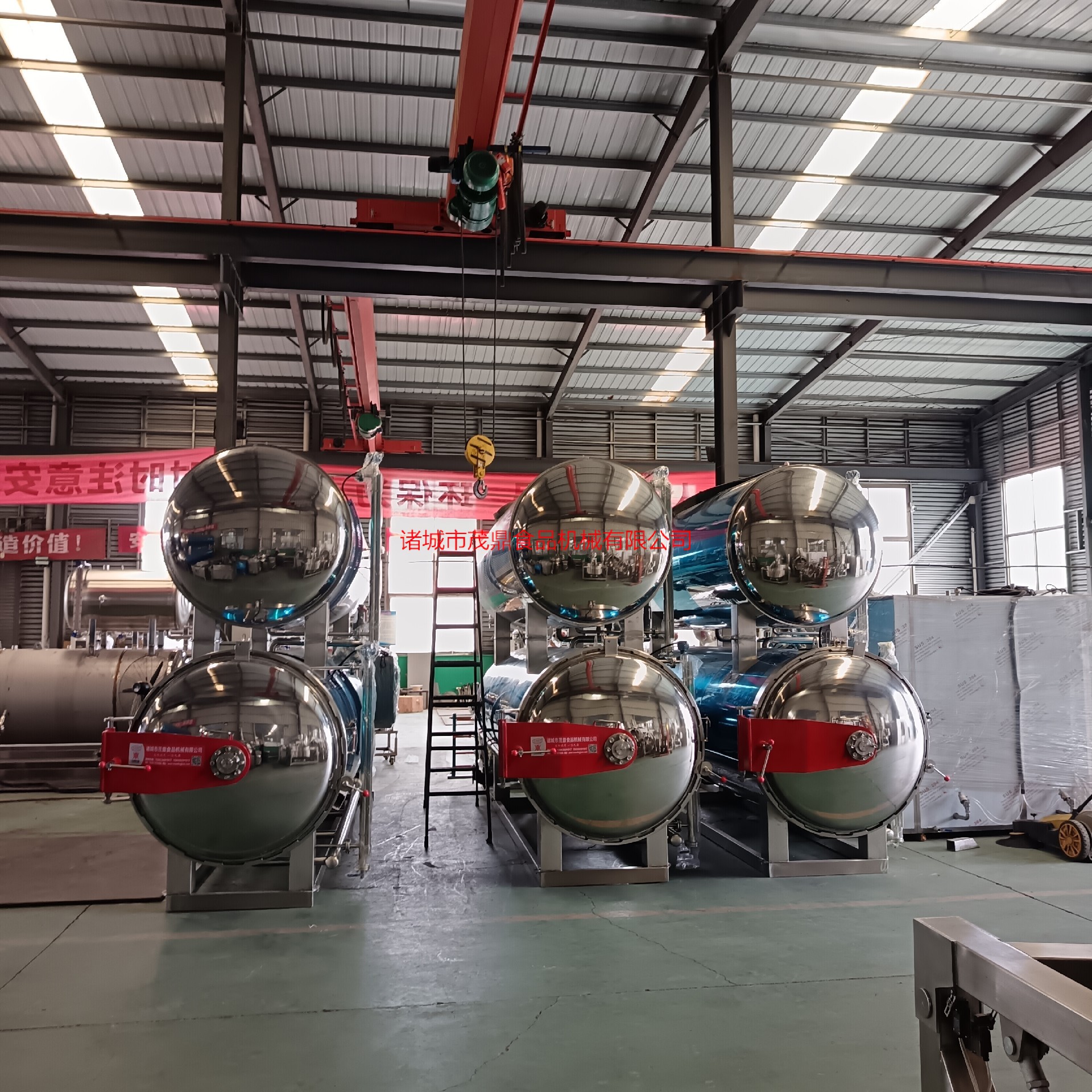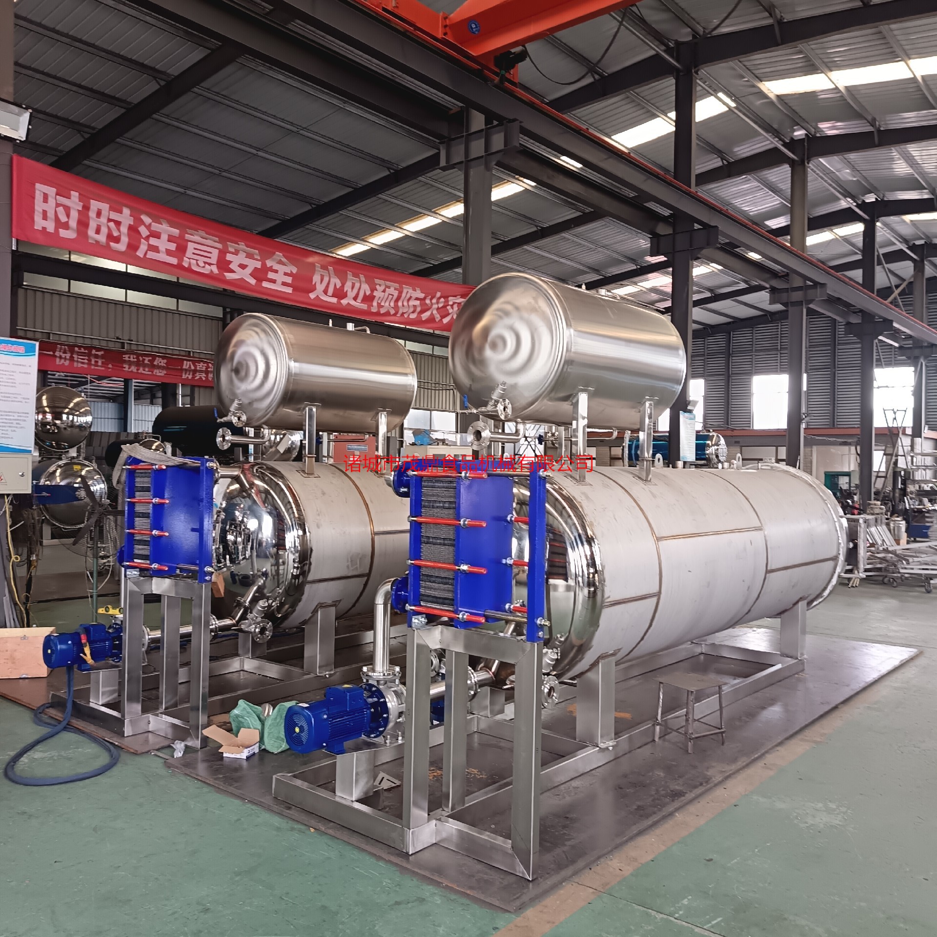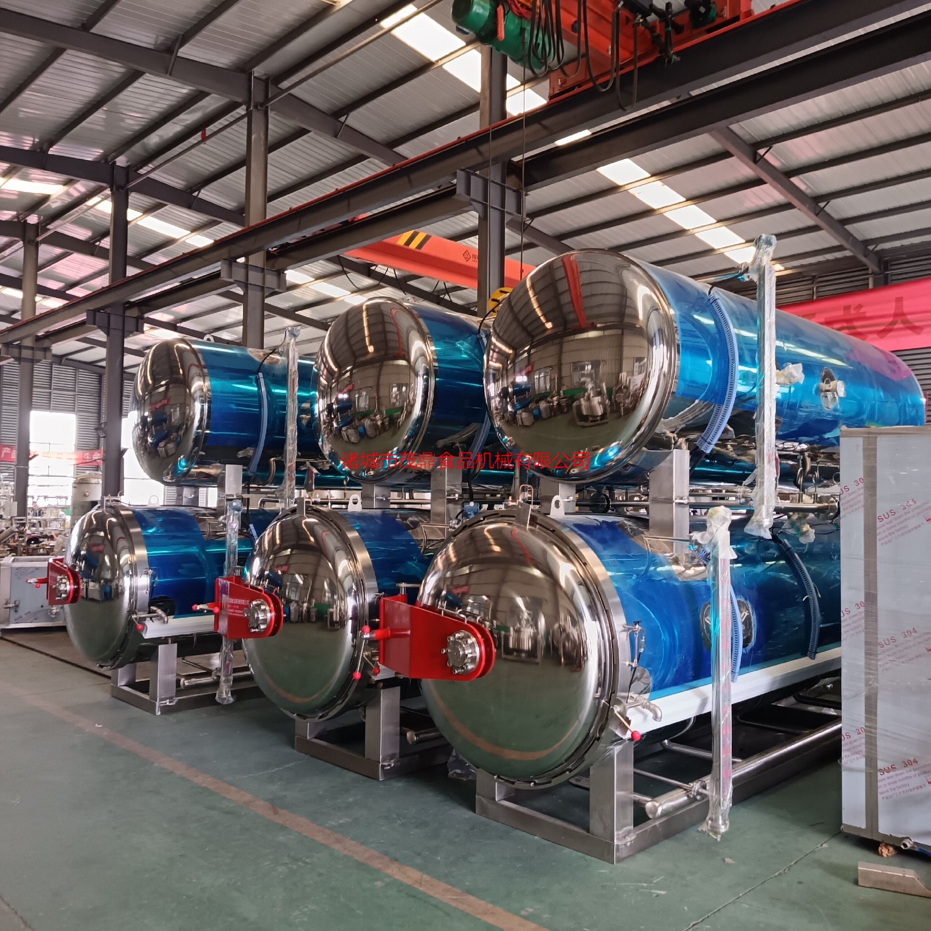 殺菌鍋以有一定的壓力的蒸氣為熱源,具有受熱面積大,熱效率高、加熱均勻、液料沸騰時間短、加熱溫度容易控制等特點。本鍋內(nèi)層鍋體(內(nèi)鍋)采用耐酸耐熱的奧氏型不銹鋼制造,配有壓力表和閥門,外型美觀、安裝容易、操作方便、穩(wěn)定可靠。殺菌鍋的作用是使食品等在密閉的環(huán)境下,接受升溫、保溫、降溫三個過程,對食品進行高溫短時間殺菌或滅菌,既殺滅食品中可能的致病菌,又保持食品的重要營養(yǎng)成份及食品的色香味不受損害。并配有壓縮空氣管系,以壓縮空氣的反壓力作用,確保產(chǎn)品在滅菌后的包裝使用要求,為延長食品的保存期。