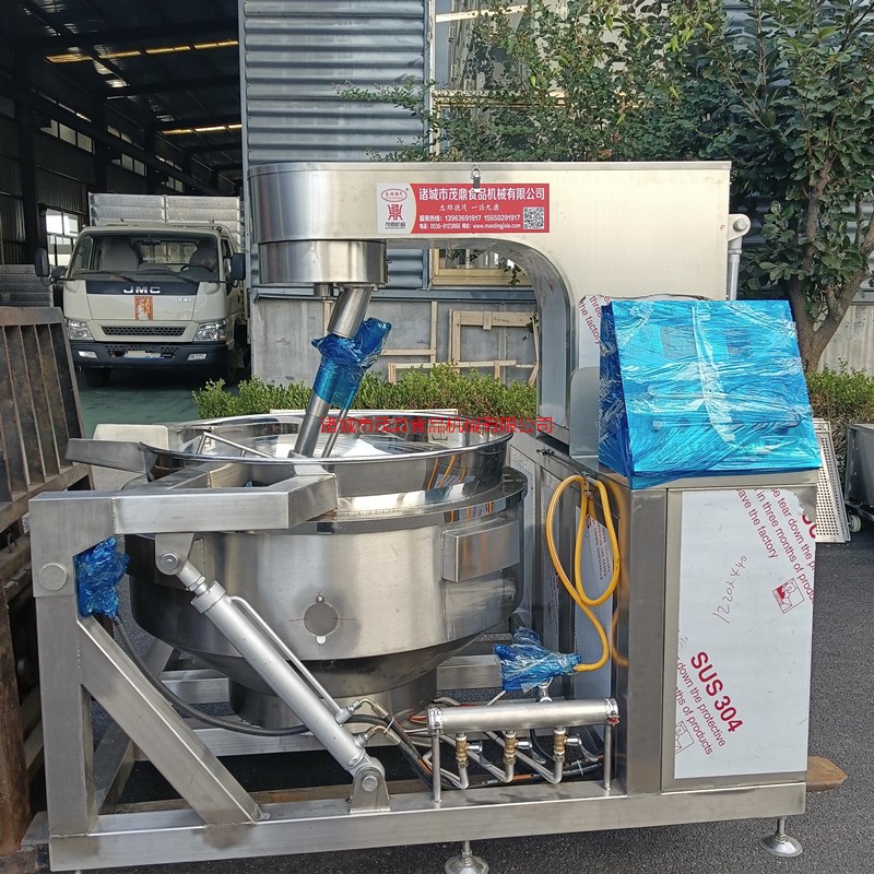 茂鼎大型底料醬料中央廚房攪拌炒鍋 油辣椒燃氣炒鍋 熬糖化糖鍋加熱均勻無死角高位出料 可按需定制-行星攪拌炒鍋-殺菌鍋_夾層鍋_茂鼎機械—諸城市茂鼎食品機械有限公司
