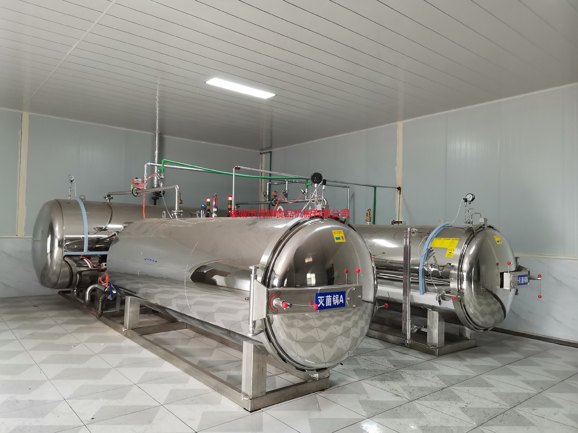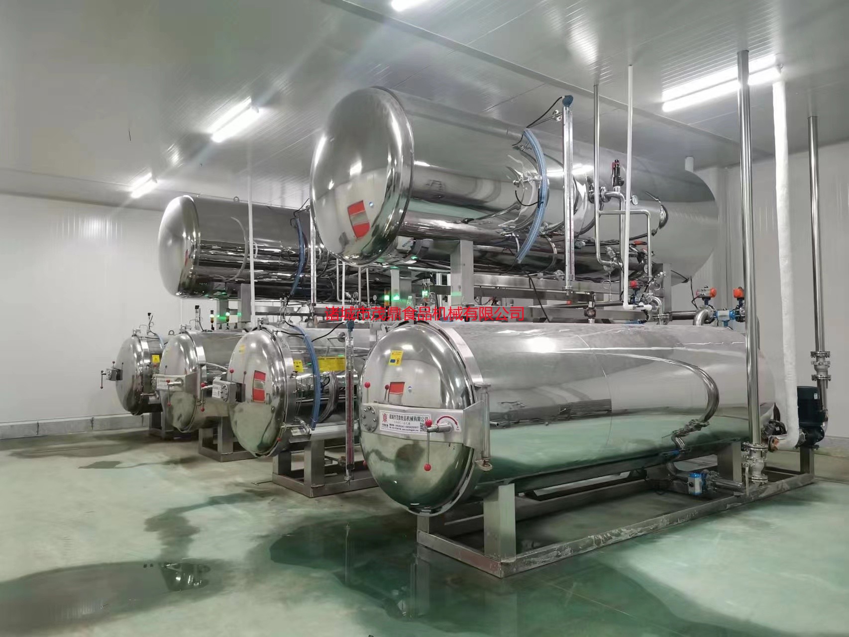 殺菌鍋由鍋體、鍋蓋、開啟裝置、鎖緊楔塊、安全聯(lián)鎖裝置、軌道、滅菌框、蒸汽噴灌及若干管口等組成。鍋蓋密封采用充氣式硅橡膠耐溫密封卷,密封可靠,使用壽命長。具有受熱面積大,熱效率高、加熱均勻、液料沸騰時(shí)間短、加熱溫度容易控制等特點(diǎn)。雙層殺菌鍋比單層殺菌鍋效率提高一倍,節(jié)約能源和殺菌時(shí)間,適用于一天多次殺菌的食品廠家。在殺菌過程中,應(yīng)注意最初排氣,進(jìn)而泄氣,使蒸汽流通。亦可每各10 分鐘放氣一次,促進(jìn)熱交換??傊仨殱M足殺菌條件的規(guī)定,按一定程序進(jìn)行,殺菌溫度的高低,殺菌壓力的大小,殺菌時(shí)間的長短和操作方法等均由不同產(chǎn)品的殺菌工藝作出具體規(guī)定。