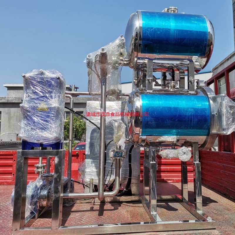 1.高溫短時(shí)間滅菌,采用雙罐熱水循環(huán)進(jìn)行殺菌,事先將熱水罐內(nèi)的水加熱到滅菌所要求的溫度,從而縮短了滅菌時(shí)間,提高工作效率。