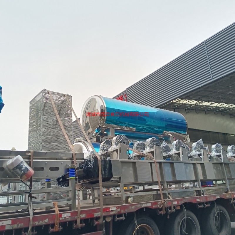 客戶定制的滿滿一大車竹筍深加工設(shè)備發(fā)貨了,有竹筍全自動(dòng)多功能雙層噴淋加水浴殺菌鍋一套,竹筍預(yù)煮機(jī)一條,竹筍氣泡清洗機(jī)一臺(tái),竹筍輸送線一條,竹筍提升機(jī)一條,振動(dòng)篩一臺(tái),竹筍翻轉(zhuǎn)吹干線一條,這臺(tái)17.5米大板車正好裝滿,感謝王總的支持與信任,祝您機(jī)器一響黃金萬(wàn)兩。