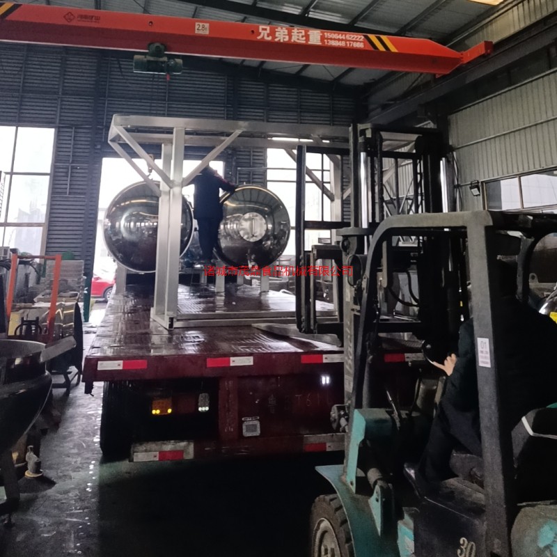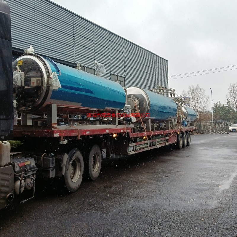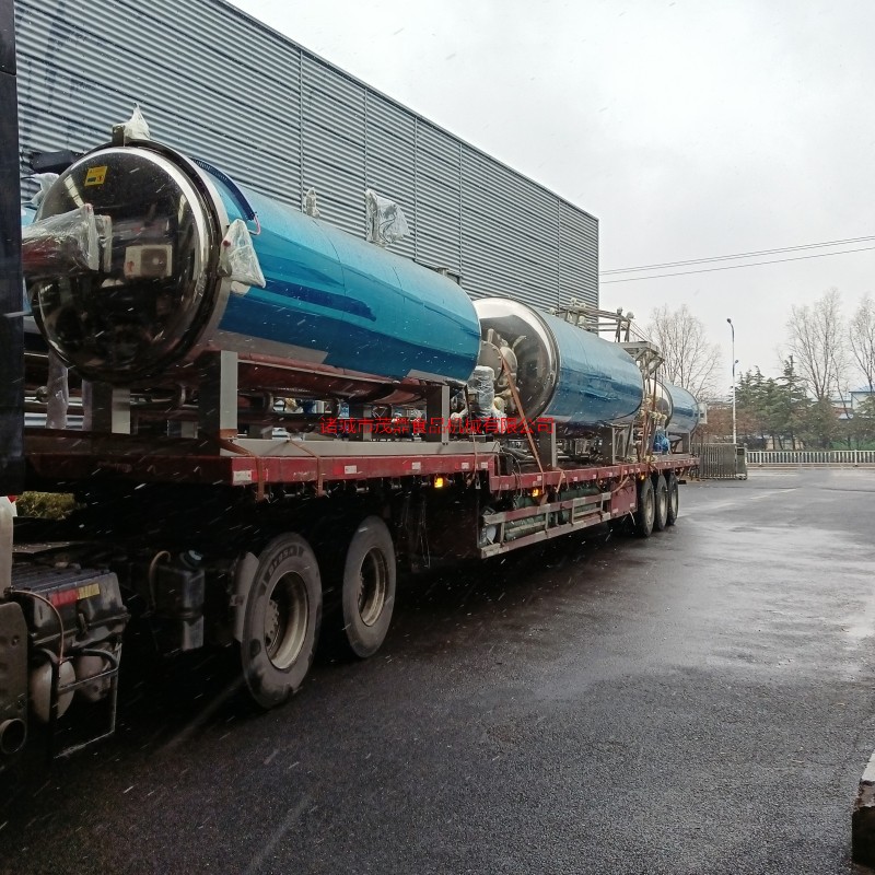全自動雙鍋并聯(lián)式殺菌鍋發(fā)貨現(xiàn)場噴淋式殺菌釜水浴式殺菌鍋功能介紹-殺菌鍋-殺菌鍋_夾層鍋_茂鼎機(jī)械—諸城市茂鼎食品機(jī)械有限公司